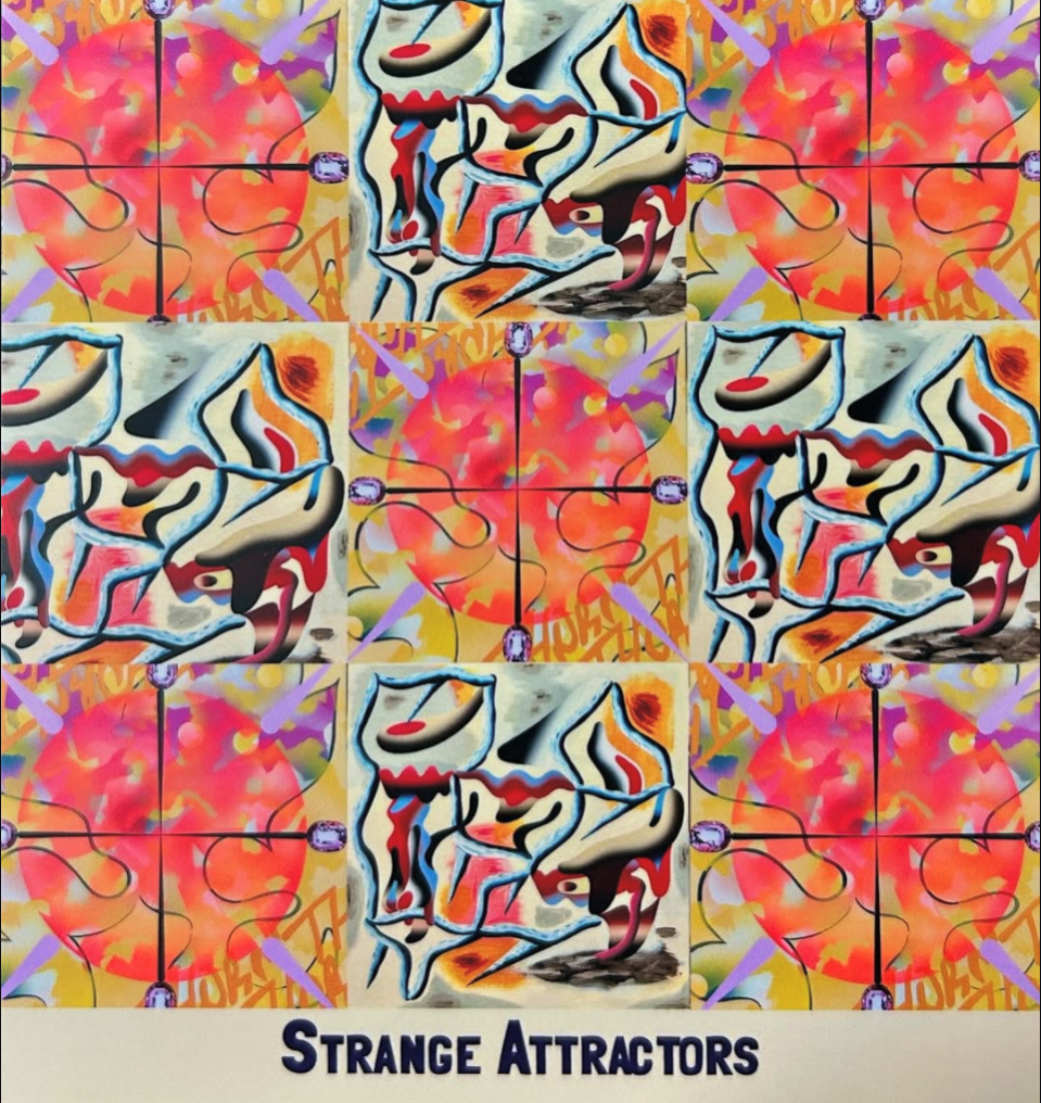 The concept of strange attractors - enigmatic points in chaos theory where seemingly random paths converge into patterns of order - informs our exhibition. Though each of us works independently, presenting our paintings together in Strange Attractors creates an environment charged with potential connections. Our distinct visual vocabularies, shaped by unique histories and impulses, orbit common themes while maintaining their own identities.