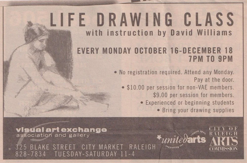 Weekly figure drawing sessions were a core part of VAE’s programming for at least 30 years.